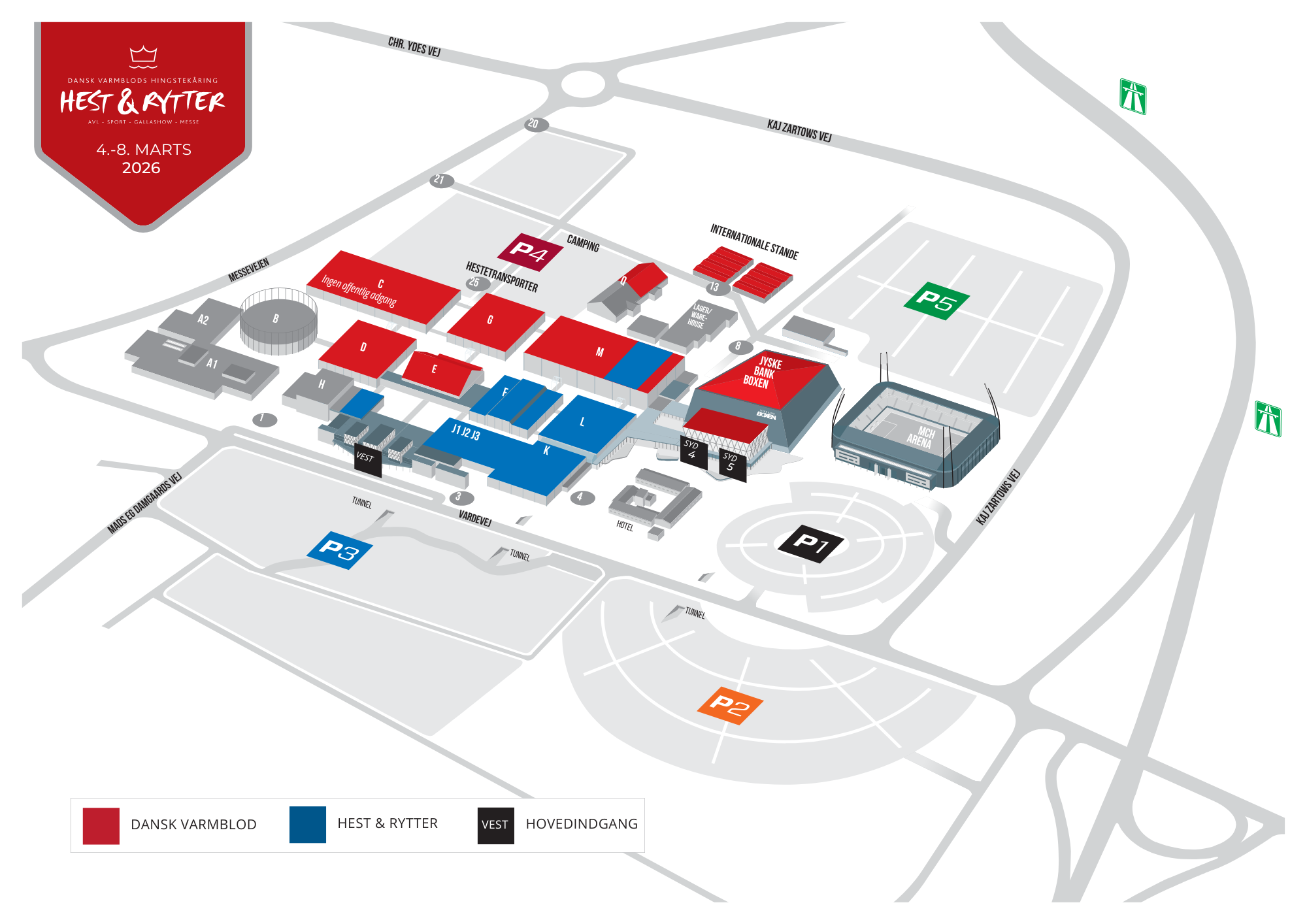 Adresse:MCH Messecenter HerningVardevej 17400 HerningDer henvises generelt til P-pladsen ved Hovedindgang VestFind vej via Google MapsKort over MCH: